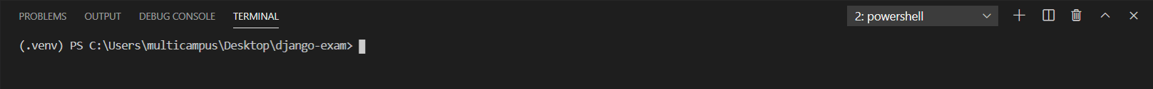 터미널 오른쪽 + 버튼을 클릭해보세요 새로운 powershell이 생성되면서 가상환경으로 실행되어 질 것입니다.